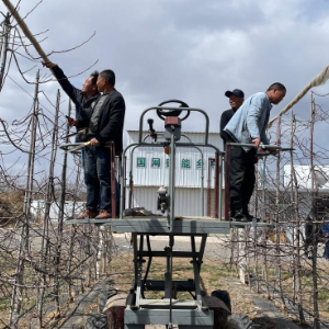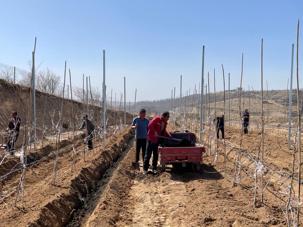 在延安市宝塔区桥沟街道烟洞沟村,趁着和煦的春风,延安市宝塔区昌民种养殖农民专业合作社理事长马文昌正和十几个村民一起,为苹果树覆膜浇水。马文昌说,延安苹果知名度逐年提升,全村人对种出更优质的苹果,寄予了更大希望。“现在,我们合作社新建的125亩山地果园全部采用了旱作矮砧密植种植技术,实现了水上山、肥入园。进入丰产期后,每亩出产8000斤以上的优质苹果将不成问题。”