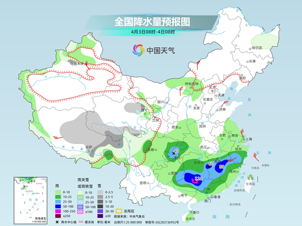 未来三天(4月2日至4日),南方降雨频繁,并伴有强对流天气,其中今天江南北部、江汉等地局地有大暴雨。5日至7日,南方多阴雨的天气格局还将持续,需注意防范连续降雨可能引发的次生灾害。气温方面,未来几天,中东部大部气温将明显下滑,冷暖差异大,公众请适时调整着装,谨防感冒 。