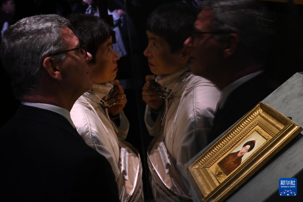 4月1日,观众参观凡尔赛宫收藏的乾隆皇帝像瓷版画。新华社记者金良快摄