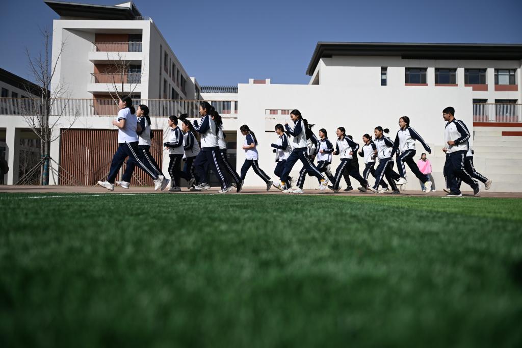 3月29日,北京四中雄安校区的学生在操场上跑步。新华社记者牟宇 摄