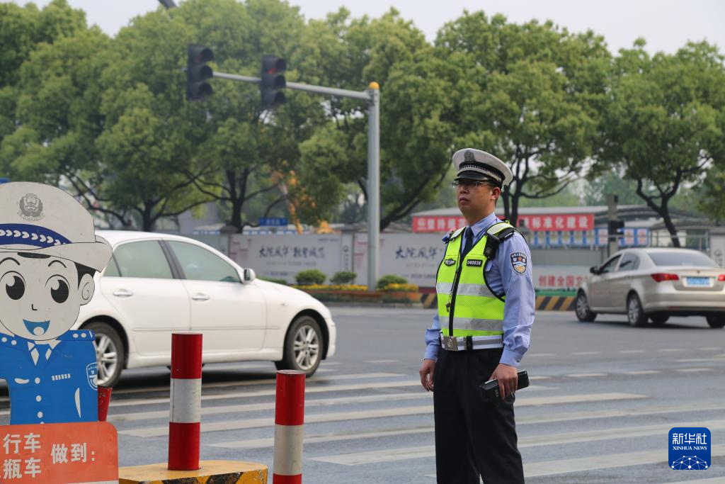 浙江省绍兴市公安局柯桥区分局交警大队马鞍中队中队长陈永虎生前的工作照(资料照片)。新华社发