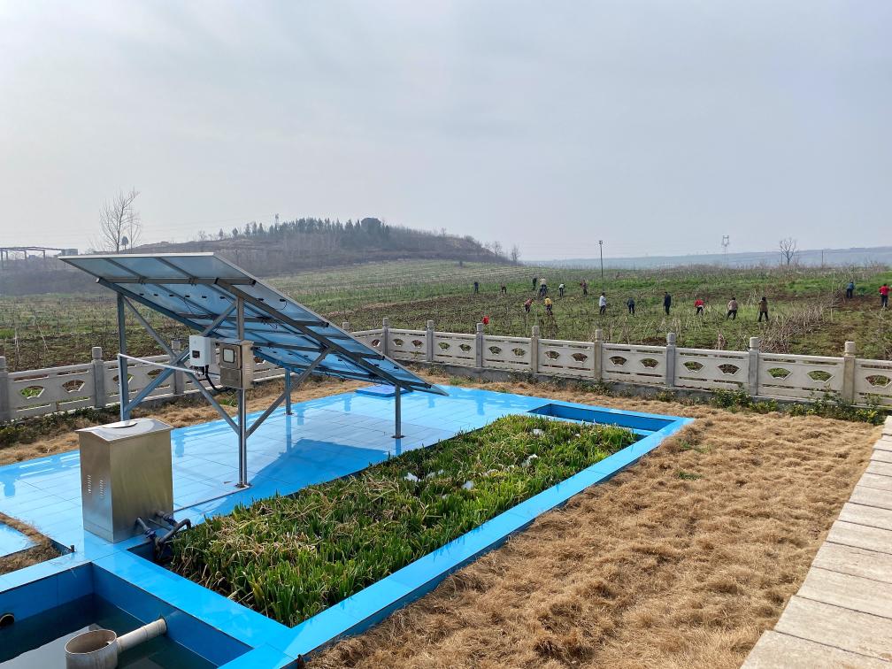 这是洛阳市宜阳县樊村镇沙坡村的污水处理设施和南侧的樱桃园。新华社记者韩朝阳 摄
