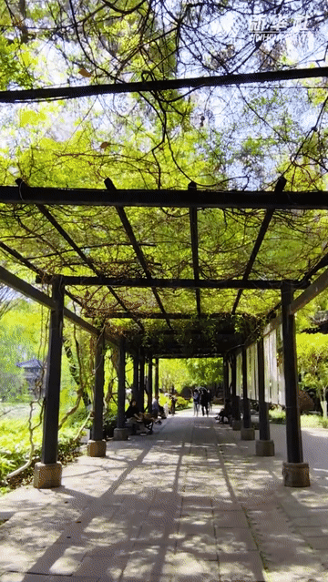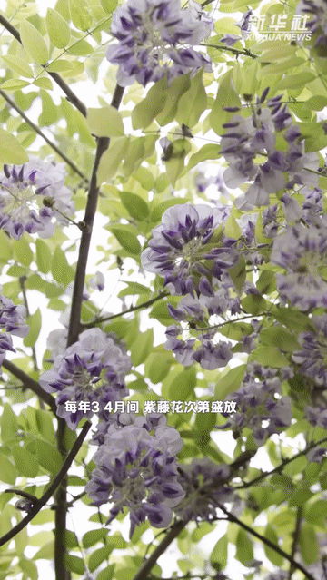 绵延90余米,总覆盖面积400多平方米的紫藤长廊,吸引了众多游客前往踏春赏花。