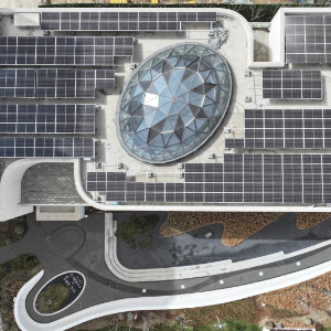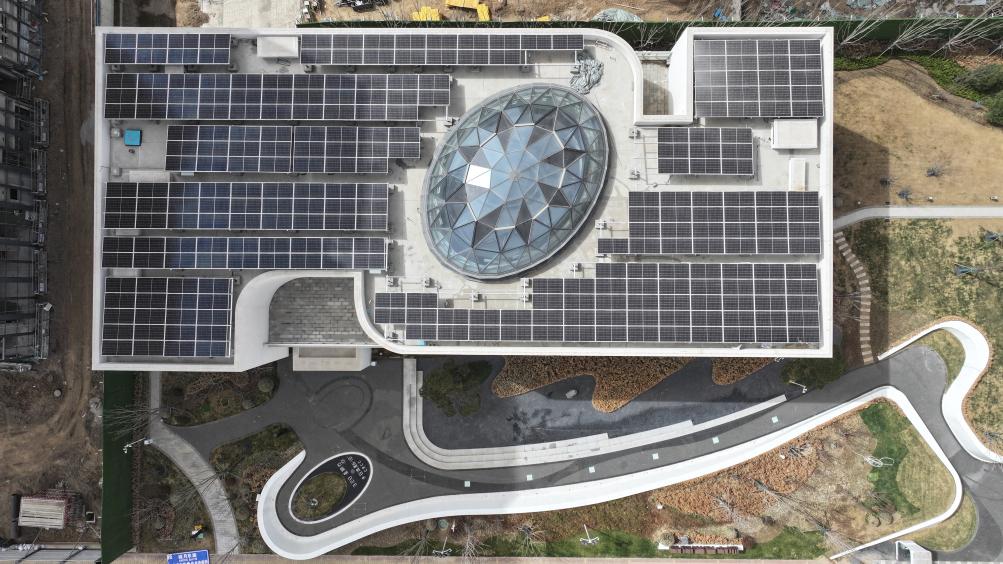 雄安自贸试验区交流展示中心屋顶的光伏发电设备。新华社记者 牟宇 摄
