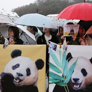4月3日,人们在韩国京畿道龙仁市的爱宝乐园雨中送别大熊猫“福宝”。新华社记者 姚琪琳 摄