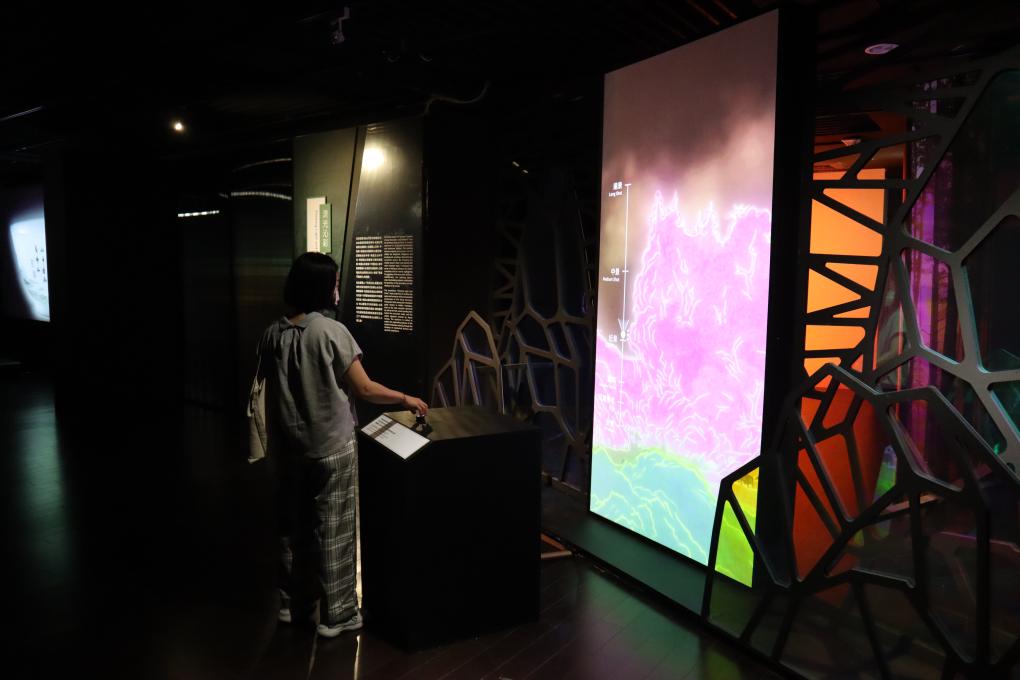 虫声、蛙鸣声、溪水声……在“小中见大”单元的“聆听松风”展区,观众仿若置身静谧、清幽的树林间,耳边唯有自然之声流淌。展区灵感取自宋代画家李唐的《万壑松风图》,模拟画中一条隐蔽山径,邀人们亲身漫步画作中的山林,感受随着山势爬升,周遭环境声响的不同变化。