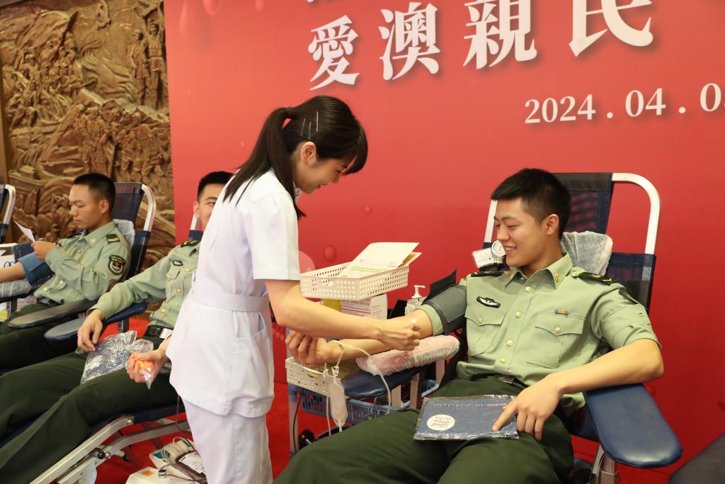 新华社澳门4月4日电(李松 刘刚)解放军驻澳门部队近日在氹仔营区参加澳门特区政府无偿献血活动,近200名官兵为澳门同胞无偿献血近7万毫升。
