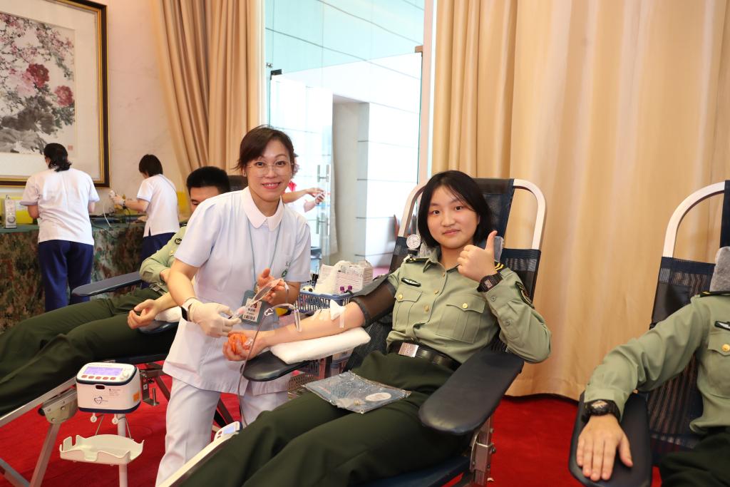 “作为一名驻澳军人,能够参加此次无偿献血活动,为澳门同胞贡献一份爱心,感到很开心。”某连二级上士曾中华刚参加完野外驻训,就报名参加无偿献血。