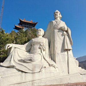 位于山西省介休市绵山上的介子推与母亲的雕像。受访者供图
