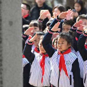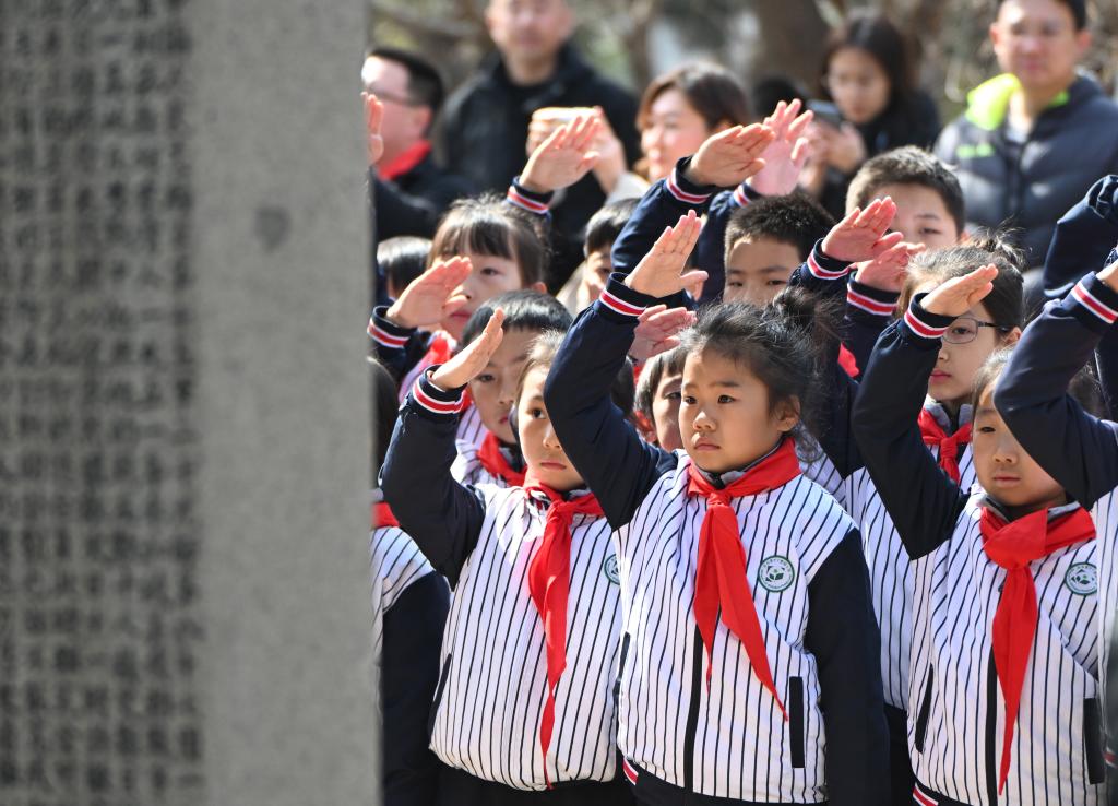 孩子们在沈阳抗美援朝烈士陵园缅怀先烈。新华社记者杨青 摄