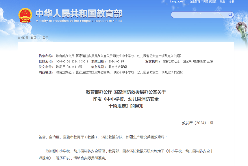 记者近日从教育部获悉,为加强中小学校、幼儿园消防安全管理,教育部、国家消防救援局研究制定了《中小学校、幼儿园消防安全十项规定》。规定明确,中小学校、幼儿园应定期开展教职工、安保人员消防安全培训。