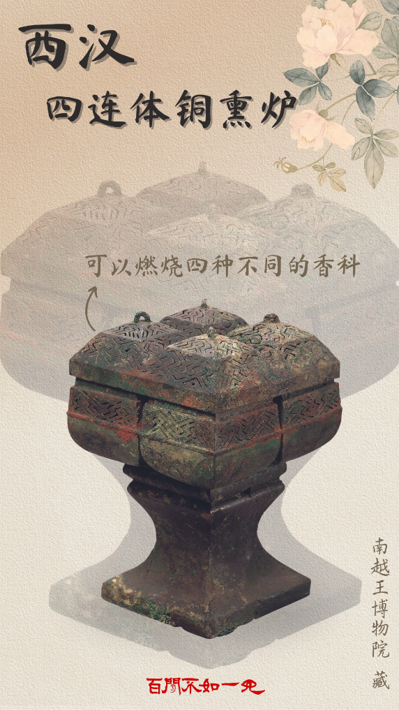 炉腹和顶盖均镂孔透气,能燃烧四种香料