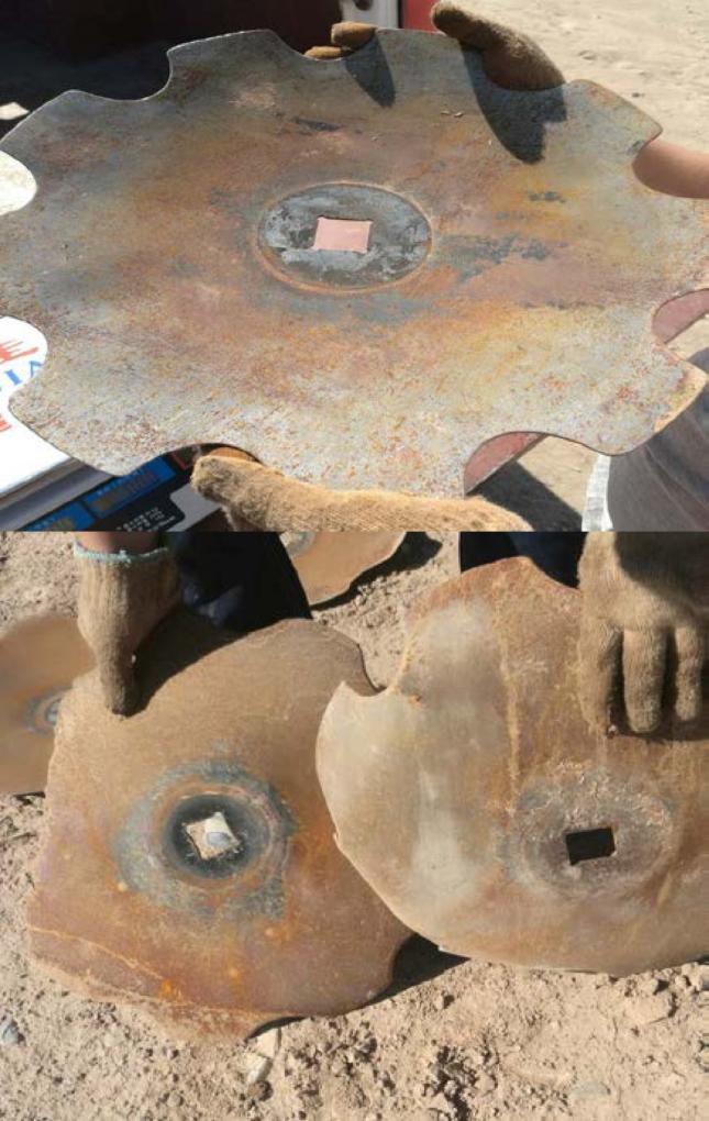 姜海昌拿出一组图片给记者介绍,两台对比试验的农用整地机的圆盘耙在新疆地区作业1600亩后,普通的耙片磨损严重,甚至出现了断裂,但金属所研制的耙片相对完整。10组对比试验中,普通耙片磨损率为10.31%,金属所研制的耙片仅为1.86%。