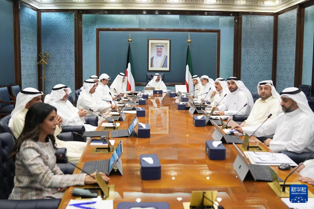 4月6日,在科威特哈瓦利省,科威特首相穆罕默德·萨巴赫(后中)主持内阁特别会议。据科威特官方通讯社6日报道,科威特首相穆罕默德·萨巴赫当天向埃米尔米沙勒提交内阁辞呈。新华社发(科威特新闻部供图)