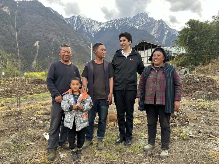 2023年4月3日,刘洪在四川甘孜藏族自治州泸定县燕子沟镇看望慰问“民族团结进家庭”联谊户苟玉刚一家。(受访者供图)