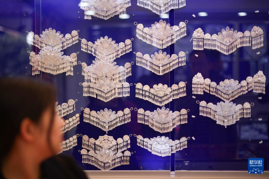 4月8日,顾客在贵州省黄平县新州镇文星社区一家银饰店试戴银饰。
