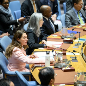 4月8日,在位于纽约的联合国总部,联合国安理会举行会议重新审议巴勒斯坦成为联合国正式会员国的申请。联合国安理会8日重新审议巴勒斯坦提出的成为联合国正式会员国的申请,决定将此申请交由其常设的接纳新会员国委员会处理。新华社发(联合国供图/洛伊·费利佩摄)