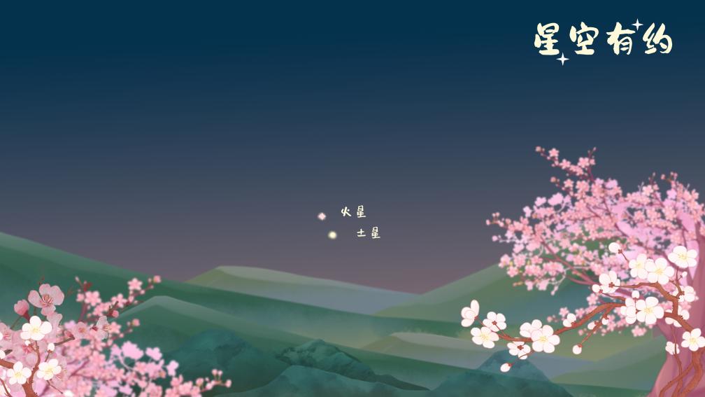 进入4月,火星与土星在黎明前的低空越靠越近,11日最近,二者之间的角距离近乎1个满月视直径大小。日出前,火星与土星携手出现在东南方,但地平高度有些低,可观测时间不足1小时。