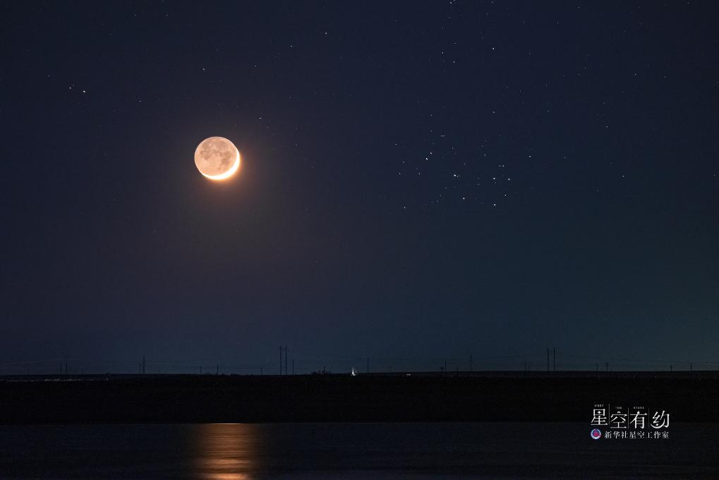 重庆星空摄影爱好者戴建峰2023年4月22日在新疆克拉玛依拍摄的昴星团伴月。(本人供图)