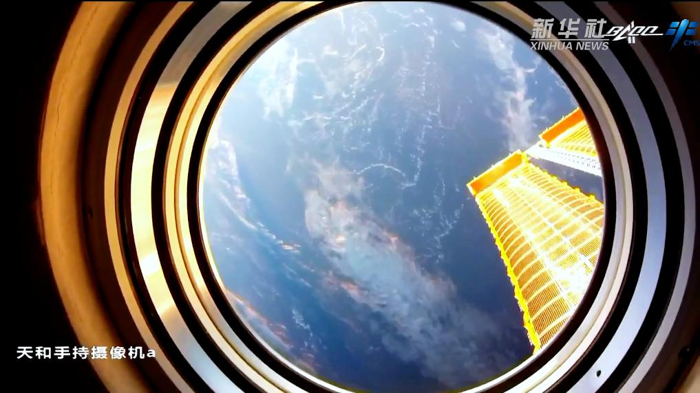 航天员在空间站舷窗边,迎来天际破晓的日出美景。金色的阳光一点点洒落在地球上,照亮了蔚蓝的海洋和翠绿的山川,如诗如画。这神秘壮阔的宇宙诗篇诉说着宇宙的悠远与.地球的生机,让人陶醉。