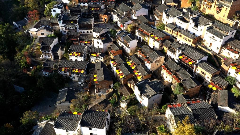 游客在游览婺源篁岭古村天街。新华社发(王晓震摄)