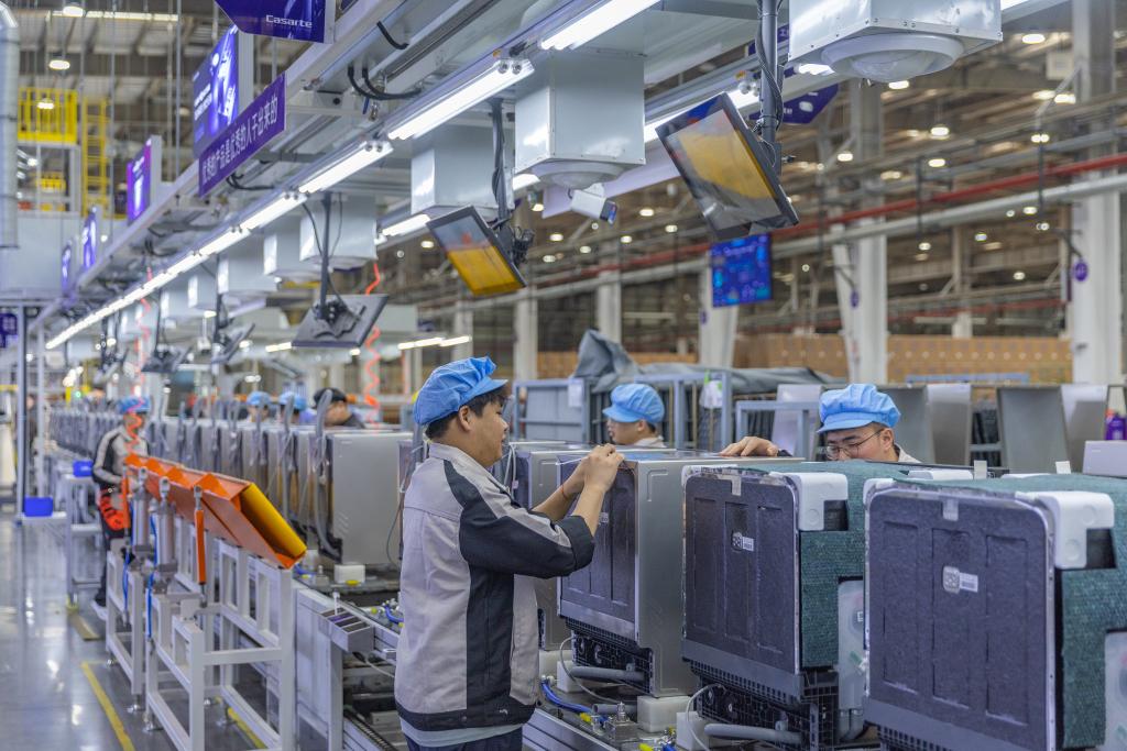 4月9日,在位于重庆市江北区的重庆海尔洗碗机互联工厂,工作人员在生产线上作业。新华社记者黄伟 摄
