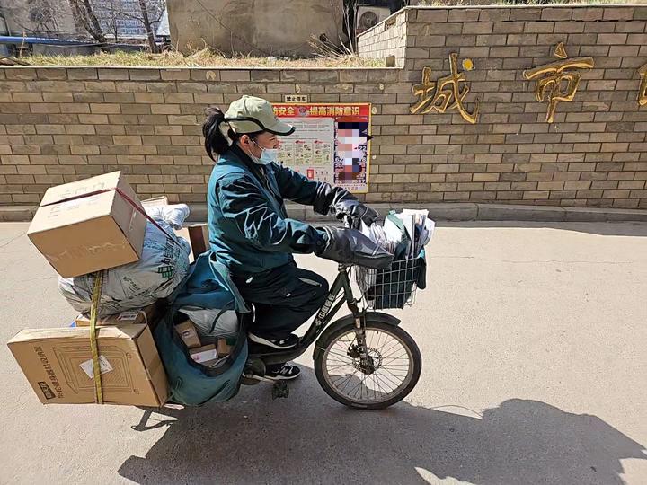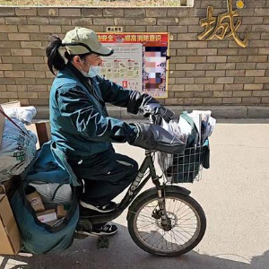 4月8日,沈阳一名快递员在小区内送件。新华社记者 于也童 摄