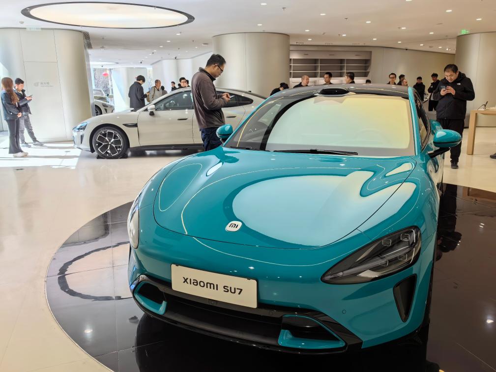 3月28日,在北京一家小米汽车零售门店内,消费者在了解小米SU7汽车。新华社记者鞠焕宗摄