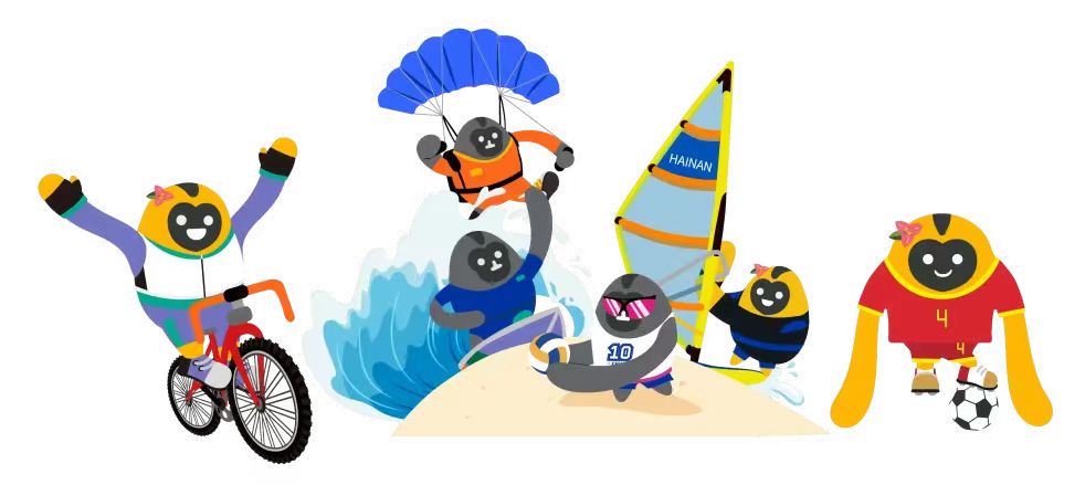 ↑从左到右依次为:冲浪猿、沙滩排球猿、滑翔伞猿、足球猿、帆船猿、自行车猿