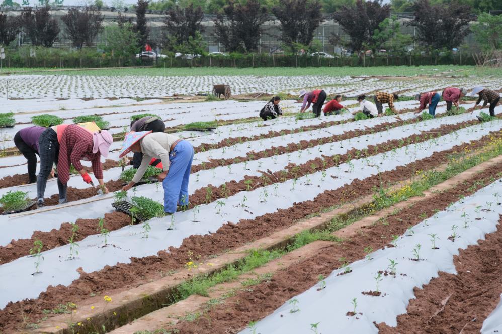 在重庆科光种苗繁育中心,工人们正将培育出的幼苗进行试种。新华社记者吴楠 摄