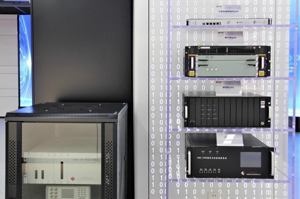 科大国盾量子技术股份有限公司展示的历代量子保密通信设备。(童璐 摄)