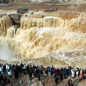 来自吉县当地的摄影师吕桂明说:“我从1999年开始,每年都会拍摄壶口瀑布‘桃花汛’,今年由于前期气温偏低,‘桃花汛’比常年平均日期有所推迟。”