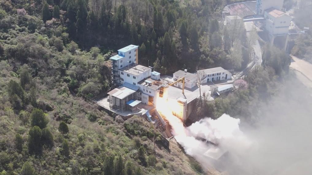 4月12日,130吨级可重复使用液氧煤油发动机进行两次起动地面点火试验的视频截图。(中国航天科技集团六院供图)