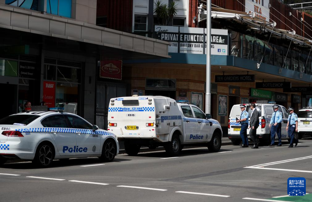 4月14日,在澳大利亚悉尼,警方在发生持刀袭击事件的商场附近工作。新华社记者 马平 摄