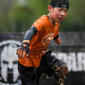 贲悦宸先天缺少一截左前臂,但没有因此放弃自己喜欢的运动。比赛中,他在起跑时因为重心不稳摔了一跤,随后便立刻站起来奋起直追,几个障碍后冲到同出发小组第一名的位置,并一鼓作气完成了比赛。“我要坚持完成比赛,不能辜负了我的付出。”贲悦宸在赛后说。