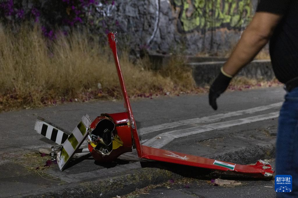 这是4月14日在墨西哥首都墨西哥城拍摄的直升机残骸。新华社记者 李梦馨 摄