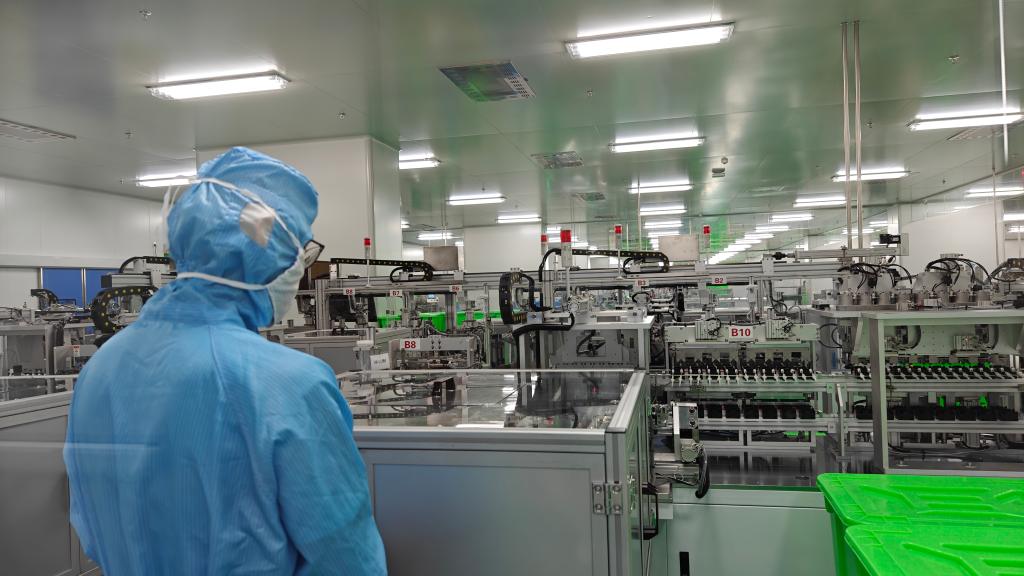 山东安得医疗用品股份有限公司自动化生产线一角。新华社记者萧海川 摄