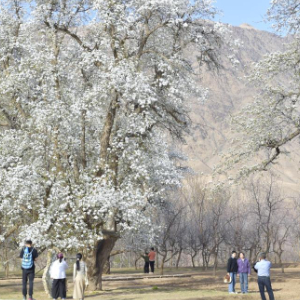 船到码头,人车上岸。步行入村,“梨花千树雪”的美景触手可及。一树树、一簇簇汇成如玉似雪的花海,美得令人心醉。