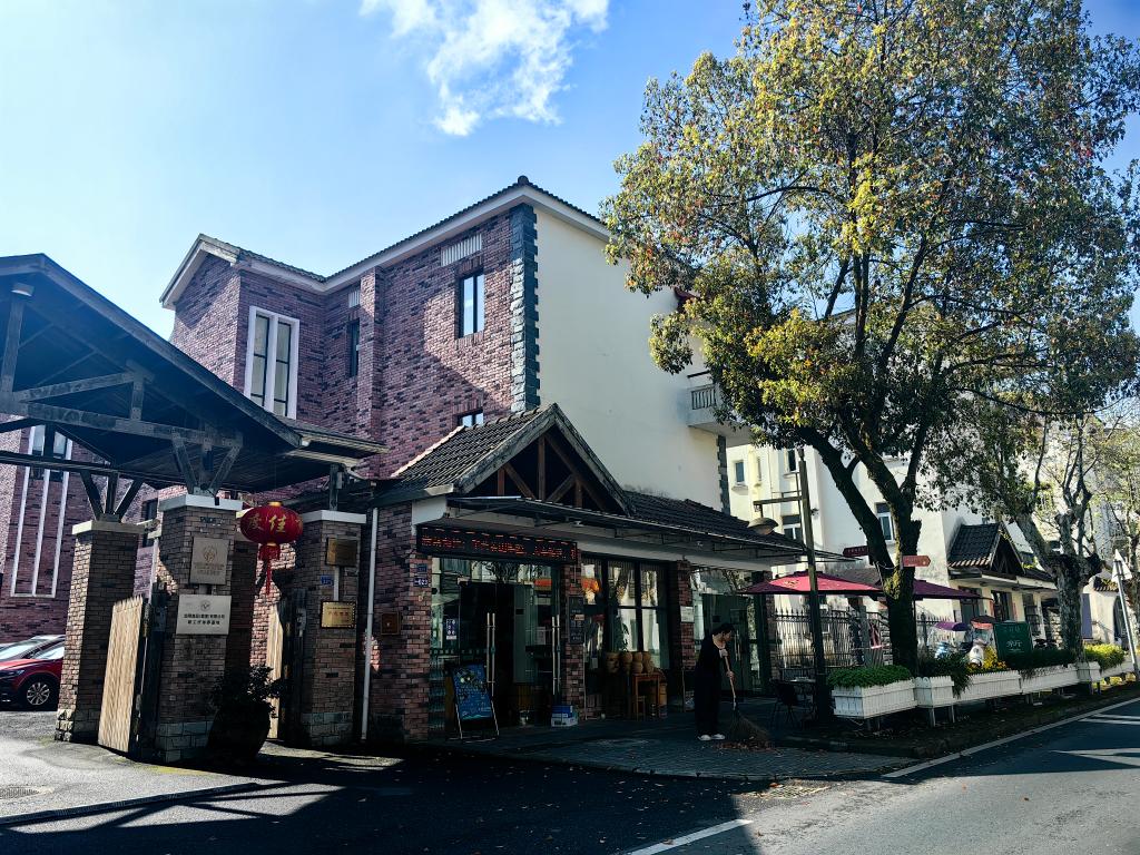 阳春时节,驱车沿黄山东麓南行,在安徽省黄山市黄山区谭家桥出口下高速,一块刻有“东黄山”字样的石头静静矗立,前方红砖木顶的海派建筑和高大繁密的法国梧桐渐渐映入眼帘。走近一看,建筑门牌上刻着“同心里”“知心里”等名称,和上海里弄相差无几。