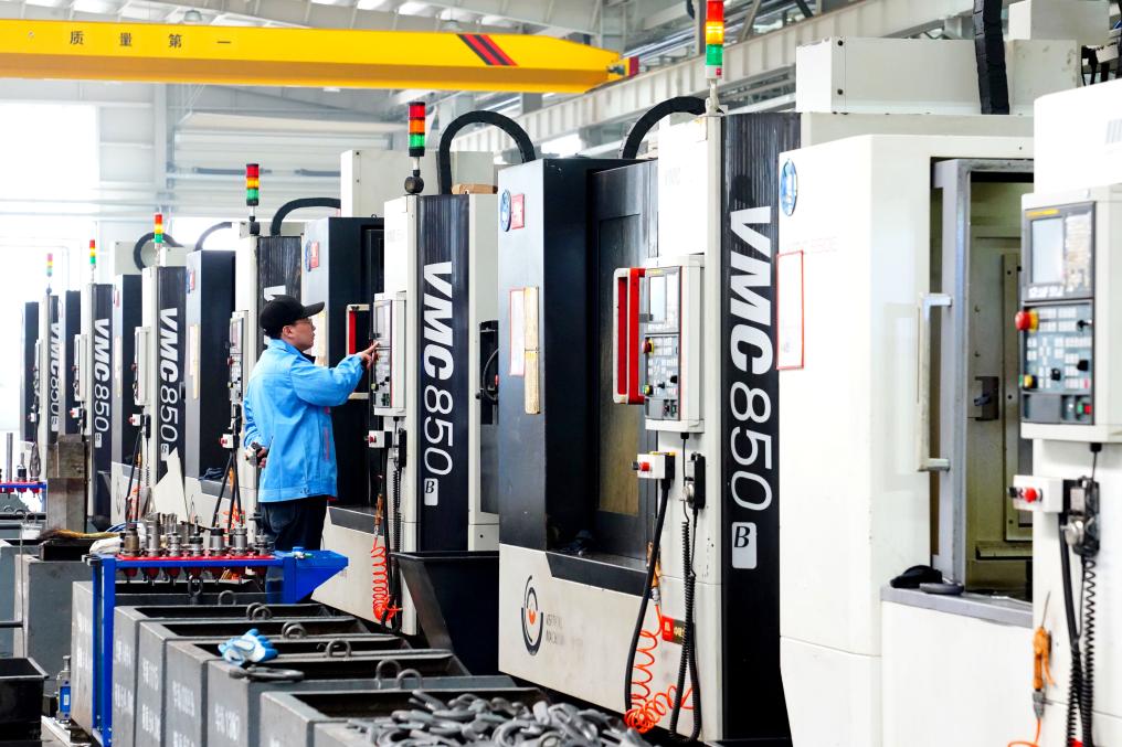 3月30日,在位于日照市岚山区的山东华源索具有限公司,工作人员在数控机床前值守。新华社记者 郭绪雷 摄