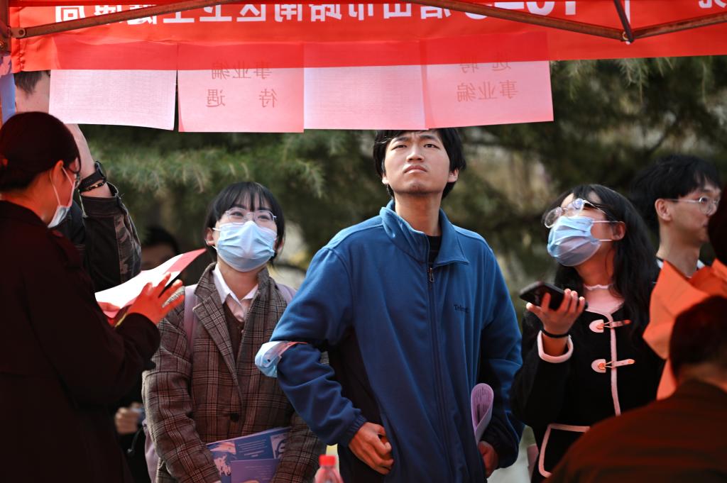 3月31日,学生在招聘会现场了解岗位信息。新华社记者 李然 摄
