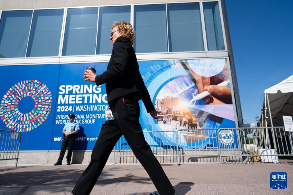 4月16日,在美国华盛顿,行人从国际货币基金组织总部旁经过。新华社记者 刘杰 摄