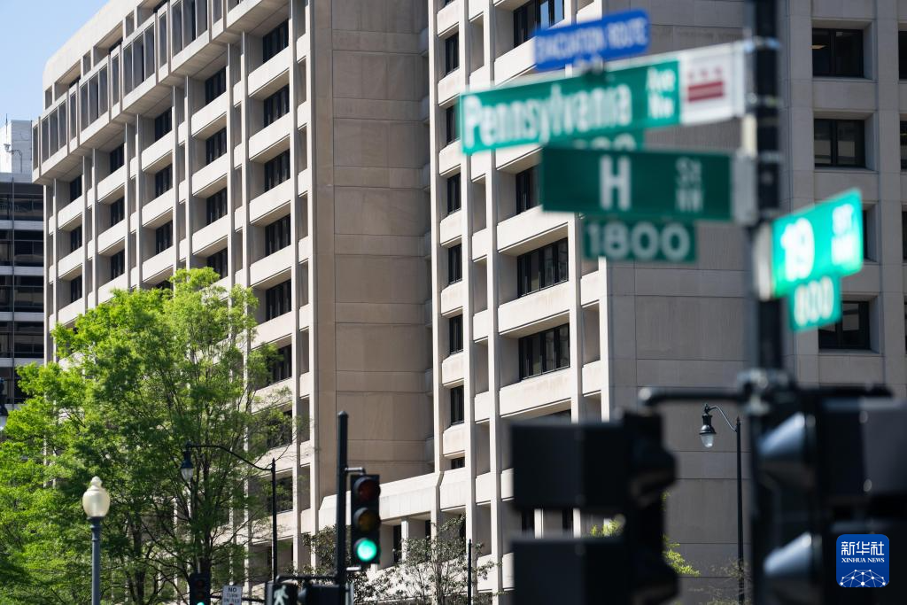 这是4月16日在美国华盛顿拍摄的国际货币基金组织总部。新华社记者 刘杰 摄
