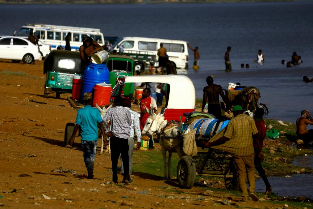 2023年4月17日,由于武装冲突导致停水,苏丹喀土穆市民到尼罗河打水。新华社发(穆罕默德·海德尔摄)