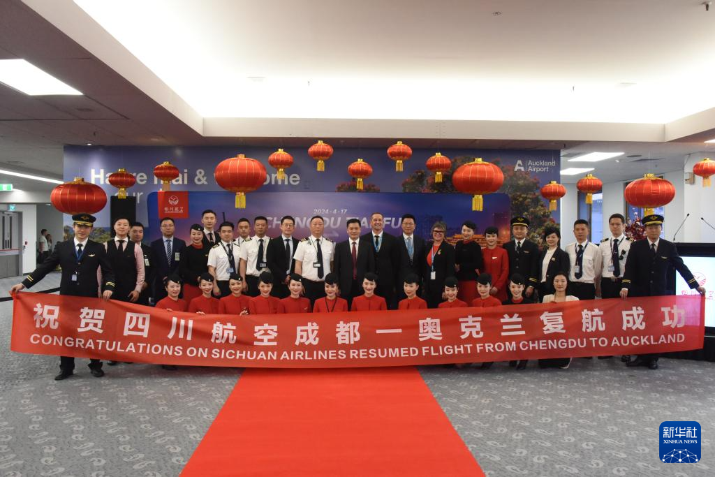 新华社新西兰奥克兰4月17日电(记者卢怀谦 郭磊)一架从中国成都起飞的熊猫主题彩绘客机17日下午降落在新西兰奥克兰国际机场,标志着中国四川航空公司执飞的成都至奥克兰直飞航班中断四年多后正式重启。