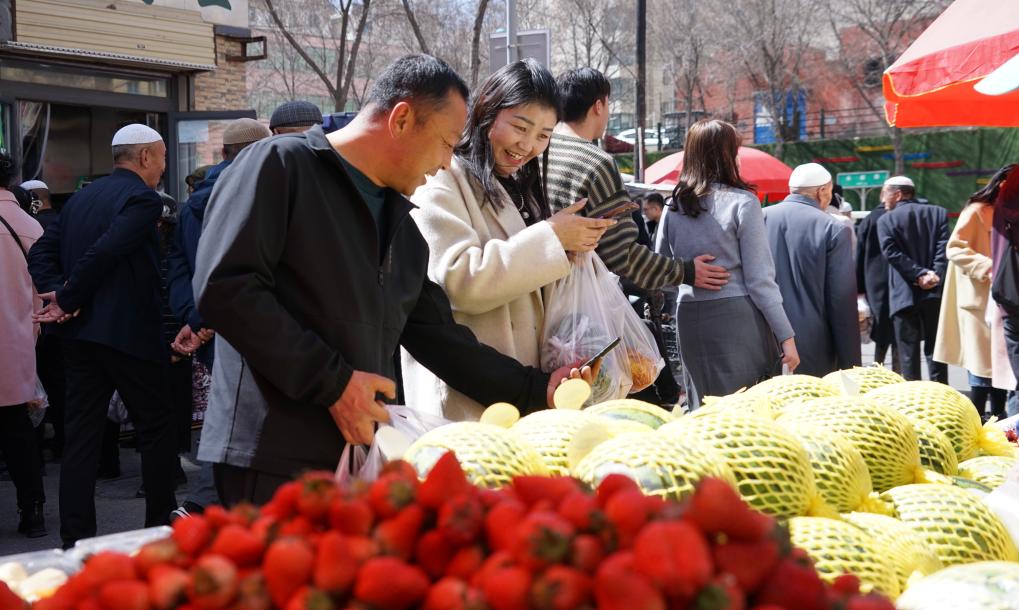 在青海省西宁市城东区下南关街,群众正在购物。新华社记者 张子琪 摄