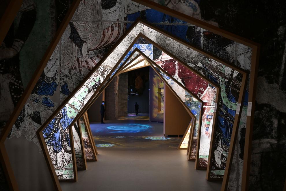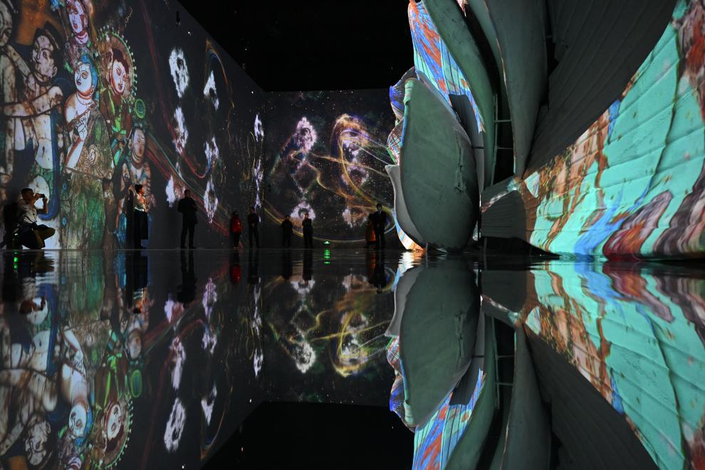 2023年12月9日,中国国家博物馆的“华彩万象——石窟艺术沉浸体验”展。新华社记者 金良快 摄