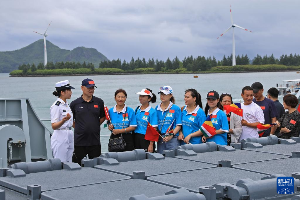 当地时间9时许,悬挂着中塞两国国旗的编队舰艇乌鲁木齐舰、临沂舰和东平湖舰缓缓驶入塞舌尔维多利亚港。塞舌尔军方代表,中国驻塞舌尔大使馆工作人员、援塞舌尔医疗队队员和华侨华人等100余人在码头迎接。
