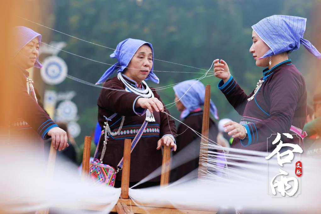↑湖南省怀化市通道侗族自治县牙屯堡镇,侗族女性在学习非遗侗锦梳纱技艺。CICPHOTO/粟勇主 摄