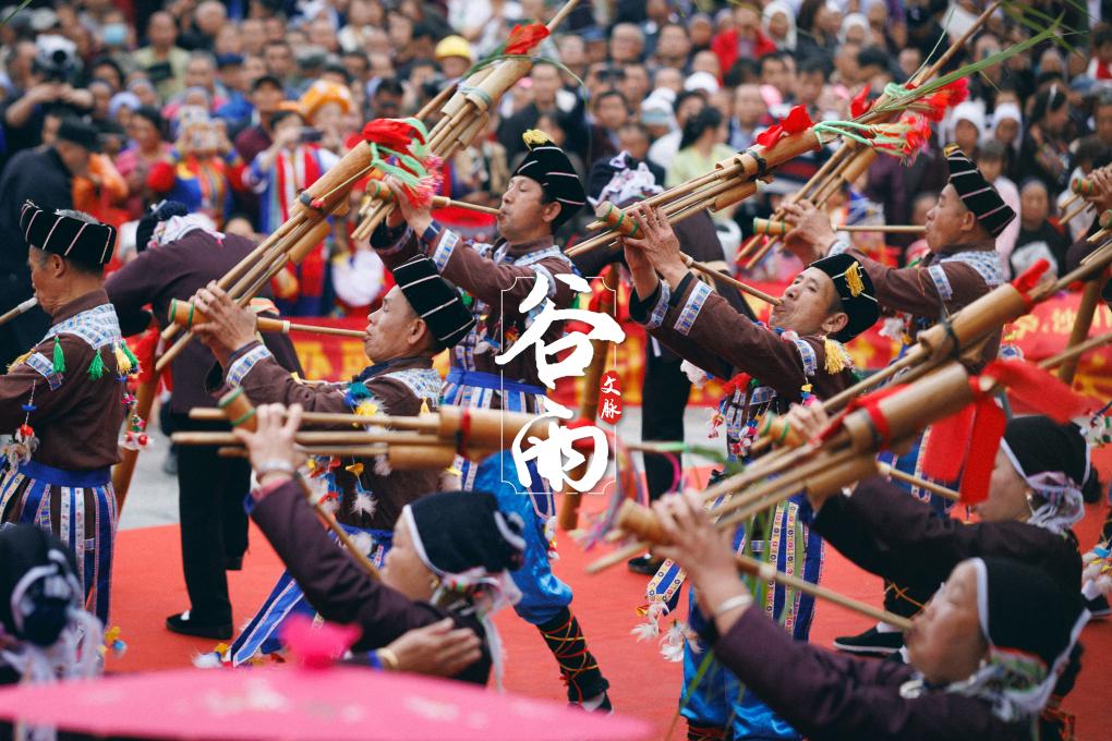 ↑湖南省怀化市通道侗族自治县牙屯堡镇,当地群众载歌载舞吹芦笙。CICPHOTO/粟勇主 摄